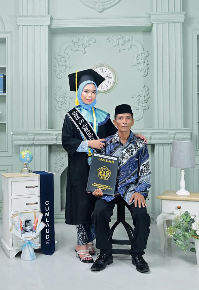 Bagaimana saya tidak bersyukur, kedua orang tua saya hanya lulusan SD tapi mereka mampu mengantarkan saya sampai wisuda di perguruan tinggi.