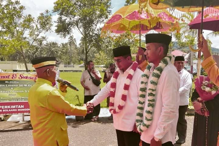 Bupati Dan Wakil Bupati Bolmut Disambut Dengan Adat